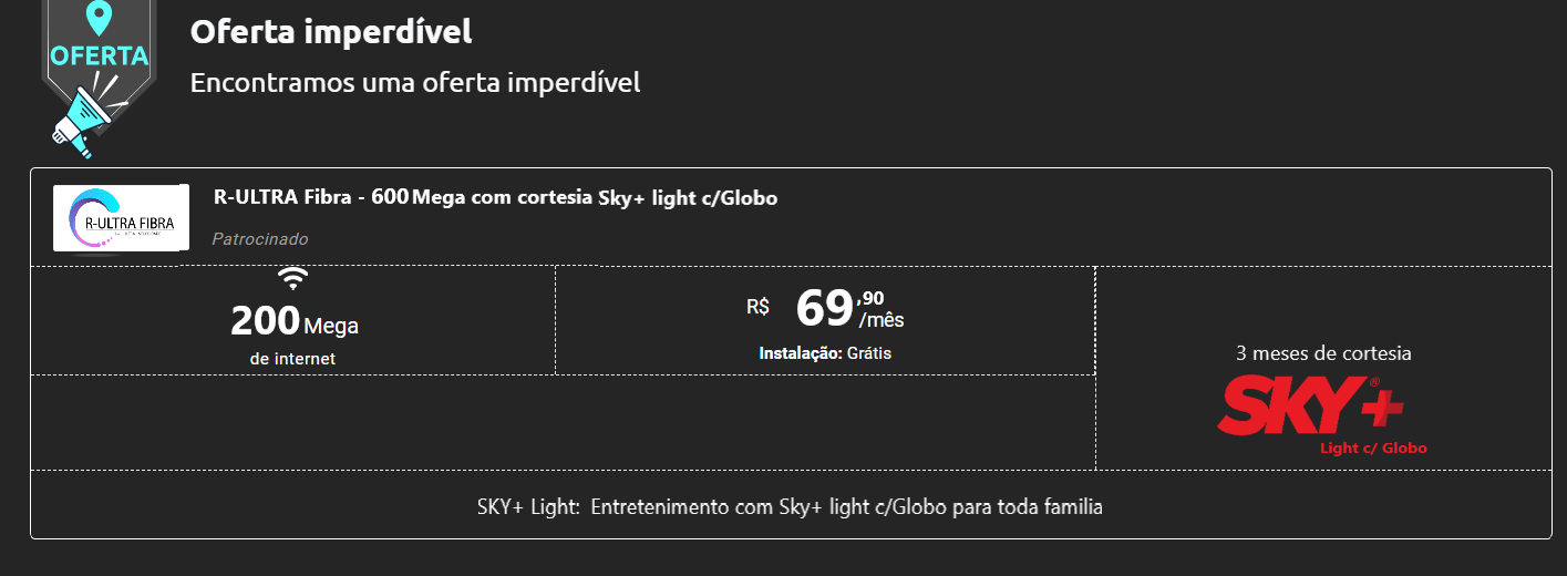Com experiência no setor, investimos constantemente em infraestrutura e tecnologia para garantir que nossos clientes tenham a melhor experiência de navegação, Streaming e trabalho remoto.